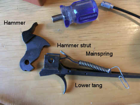 Pictured below is the hammer and lower tang assembly. The trigger assembly was